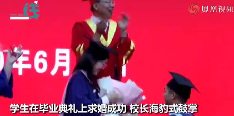 學(xué)生在畢業(yè)典禮上求婚成功 校長海豹式鼓掌