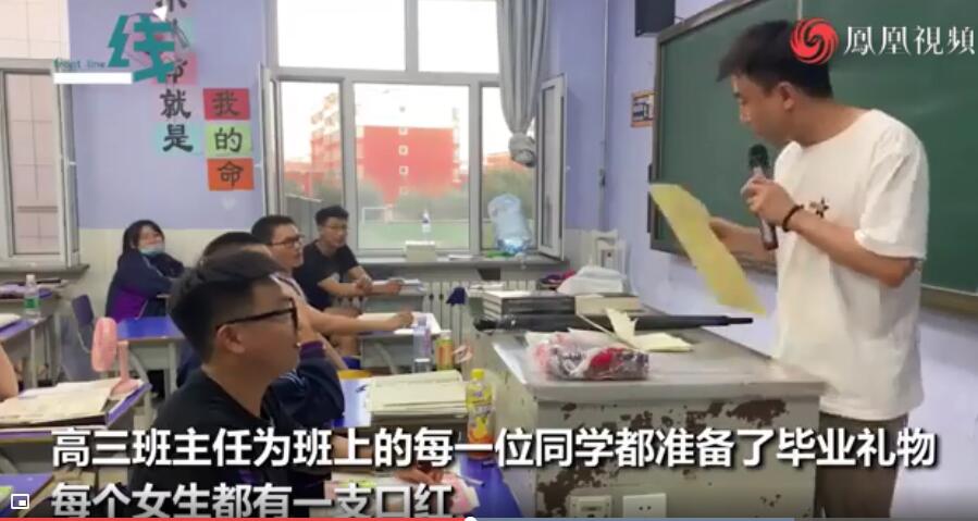 高三班主任為班里的每一位同學(xué)都準(zhǔn)備了畢業(yè)禮物,每一女生都有一只口紅,女同學(xué)們歡呼雀躍