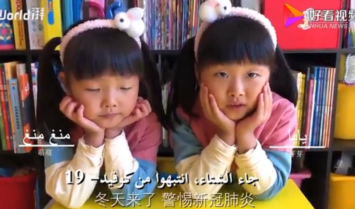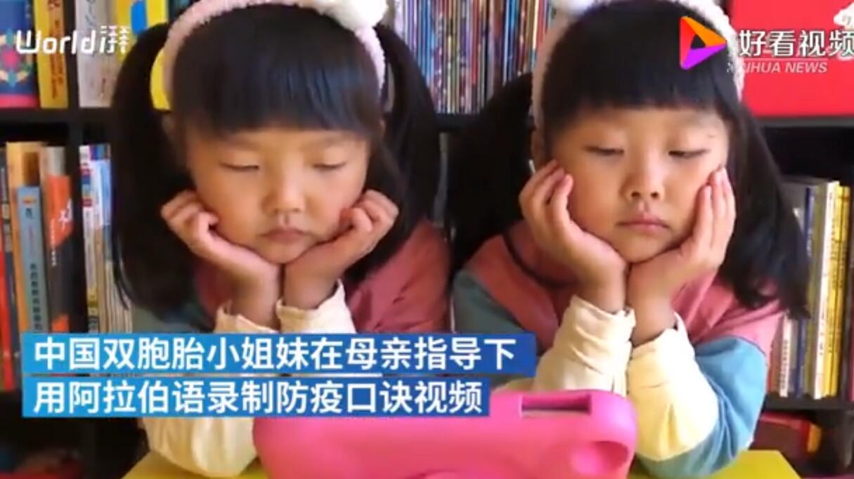 來自中國的雙胞胎姐妹萌萌和芽芽用阿拉伯語錄制視頻,告訴網(wǎng)友面對疫情應做好哪些防疫措施。雙胞胎姐妹稚嫩的童音,可愛的模樣,受到阿拉伯國家網(wǎng)友廣泛關注。