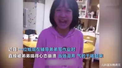 視頻中的姐姐正在幫弟弟輔導(dǎo)家庭作業(yè),然后被直接氣得心態(tài)爆炸,當(dāng)場(chǎng)淚奔不說(shuō),而且還被氣得直咳嗽。末了還不忘在爸爸媽媽面前控訴弟弟:“我還以為他會(huì)寫呢,還想照著書(shū)上的寫。”
