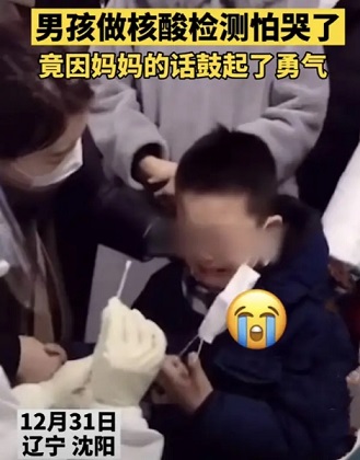 沈陽的一個(gè)小朋友被小小的棉簽嚇哭了幾回,不過在媽媽和醫(yī)護(hù)人員的鼓勵(lì)下,孩子最終鼓起勇氣完成了檢測。