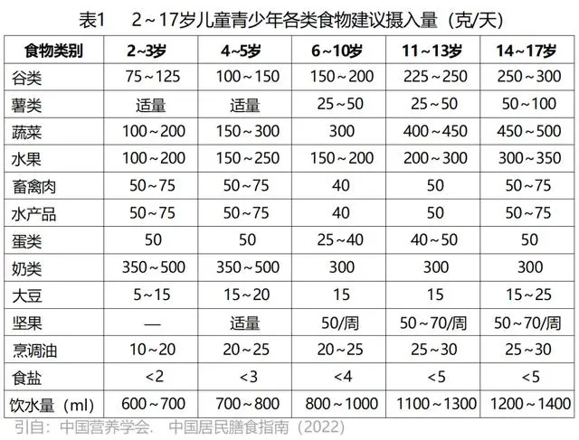 每餐的膳食應(yīng)包括谷薯類、蔬菜水果、畜禽魚蛋和大豆等食物中的3類及以上;每天食物種類達(dá)到12種以上,每周達(dá)到25種以上。(見表1)