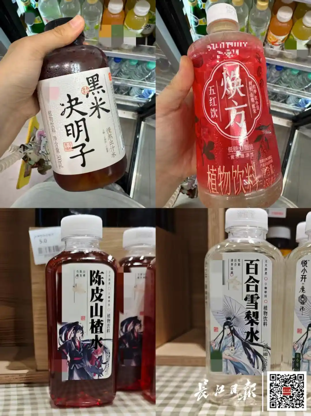 7月15日,記者在武漢一家大型商超一樓中庭一眼就看到一排排包裝簡約、色調(diào)清爽的養(yǎng)生飲料。瓶身設(shè)計大多透亮,消費者一眼就能看到飲品本身的色澤。