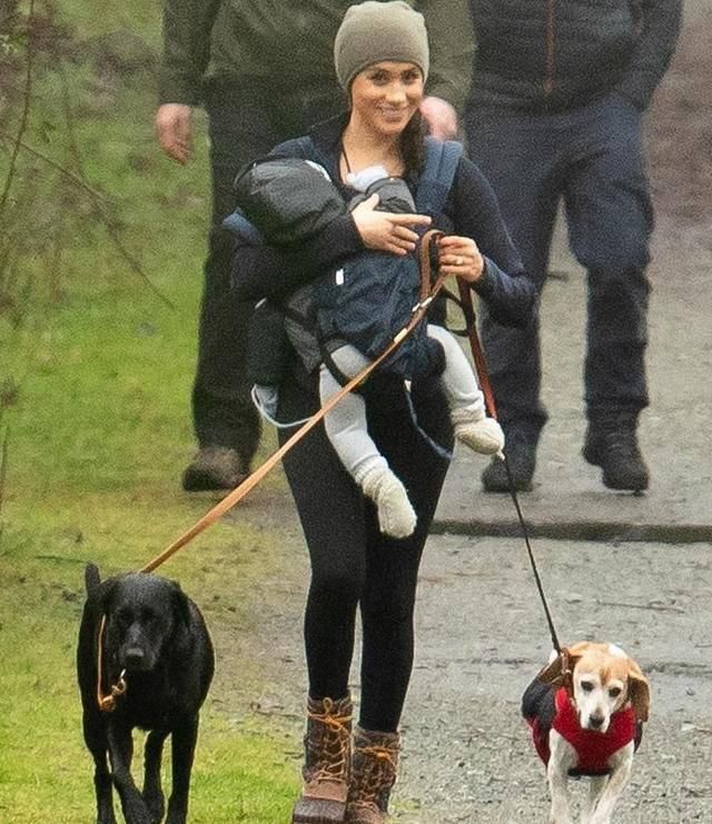 梅根抱娃遛狗,阿奇穿HM衣服略寒酸