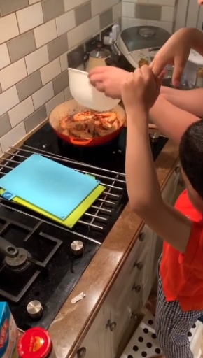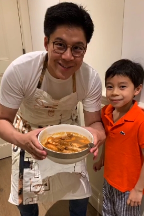 霍啟剛與兒子共同下廚,疫情期間的又一項(xiàng)親子活動(dòng)