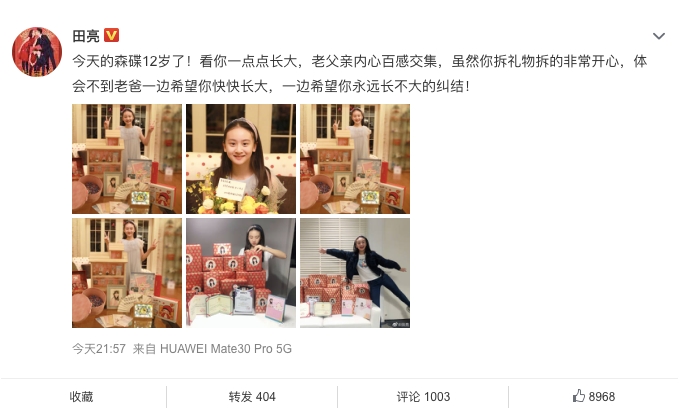 今年是森碟12歲生日,葉一茜也為女兒森蝶慶祝生日,暖心祝福字里行間愛(ài)意滿滿,小編還記得去年森碟生日的時(shí)候,田亮在微博中喊話“森碟,和好朋友過(guò)完生日記得早點(diǎn)回家”!看樣子今年森碟沒(méi)出去和朋友一起慶祝!