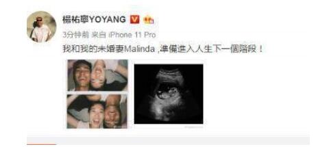 楊祐寧當(dāng)爸曬未婚妻照和B超照 準(zhǔn)備進(jìn)入人生下一個階段