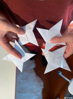 5月26日,海清在微博曬出陪兒子做的折紙作業(yè),并發(fā)文:“網(wǎng)課,老師讓折紙,陪他折了仨小時,我中間睡了一覺,等他完成后我才知道這是體育課的作業(yè),體育課先折紙,自制飛鏢,再錄各種視頻上傳,飛得遠的打得準的,才能有好成績,難怪他折這么仔細這么久。這屆孩子太難了,幸好我出生的早”。照片中海清的兒子十分專注地做著折紙作業(yè),最后呈現(xiàn)的飛鏢成果看起來十分像模像樣。