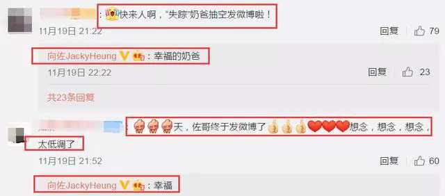 向佐在評(píng)論區(qū)與網(wǎng)友互動(dòng),看得出心情大好,有網(wǎng)友評(píng)論:“快來(lái)人啊,失蹤奶爸抽空發(fā)微博啦!”向佐回復(fù)評(píng)論:“幸福的奶爸”,還有網(wǎng)友評(píng)論“奶皇爸多吃點(diǎn),新任爸爸辛苦啦”,向佐也回復(fù)“她比較辛苦”,那這個(gè)她不用想了,大家自然就知道是誰(shuí)了吧,就是指老婆郭碧婷。向佐這樣的回復(fù)這次也成為了公眾們的關(guān)注焦點(diǎn)了。