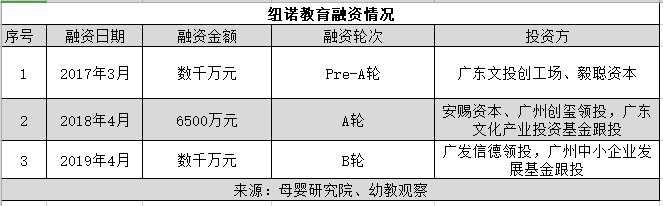 自2009年創(chuàng)辦成立以來(lái),在三年內(nèi)獲得三輪數(shù)千萬(wàn)融資,其中2019年4月獲得A輪融資和B輪融資。紐諾教育創(chuàng)始人王榮輝表示,本輪融資主要用于人才培養(yǎng)和區(qū)域擴(kuò)張。